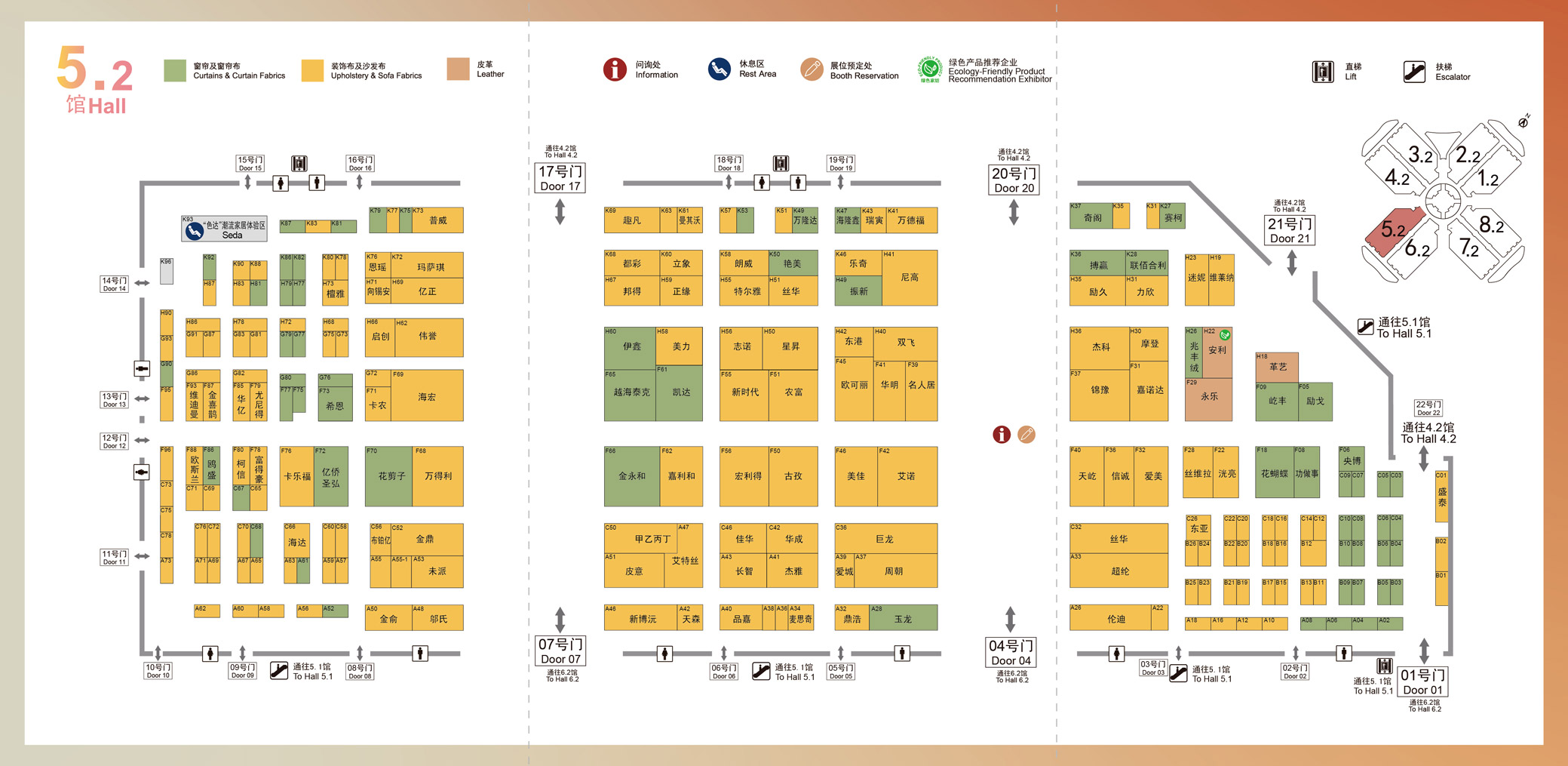 5.2号馆潮流布艺馆:聚焦装饰布及沙发布、窗帘及窗帘布、生态皮革,以潮流设计与环保创新驱动行业可持续发展。