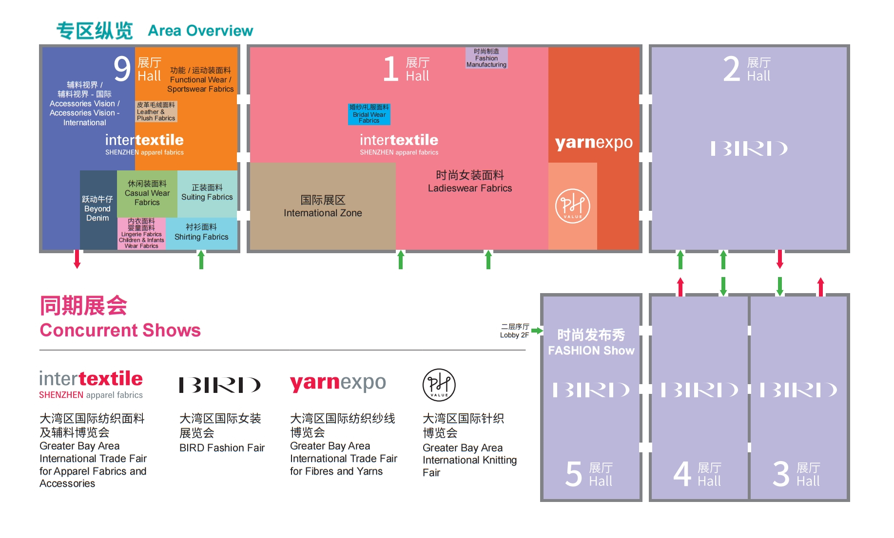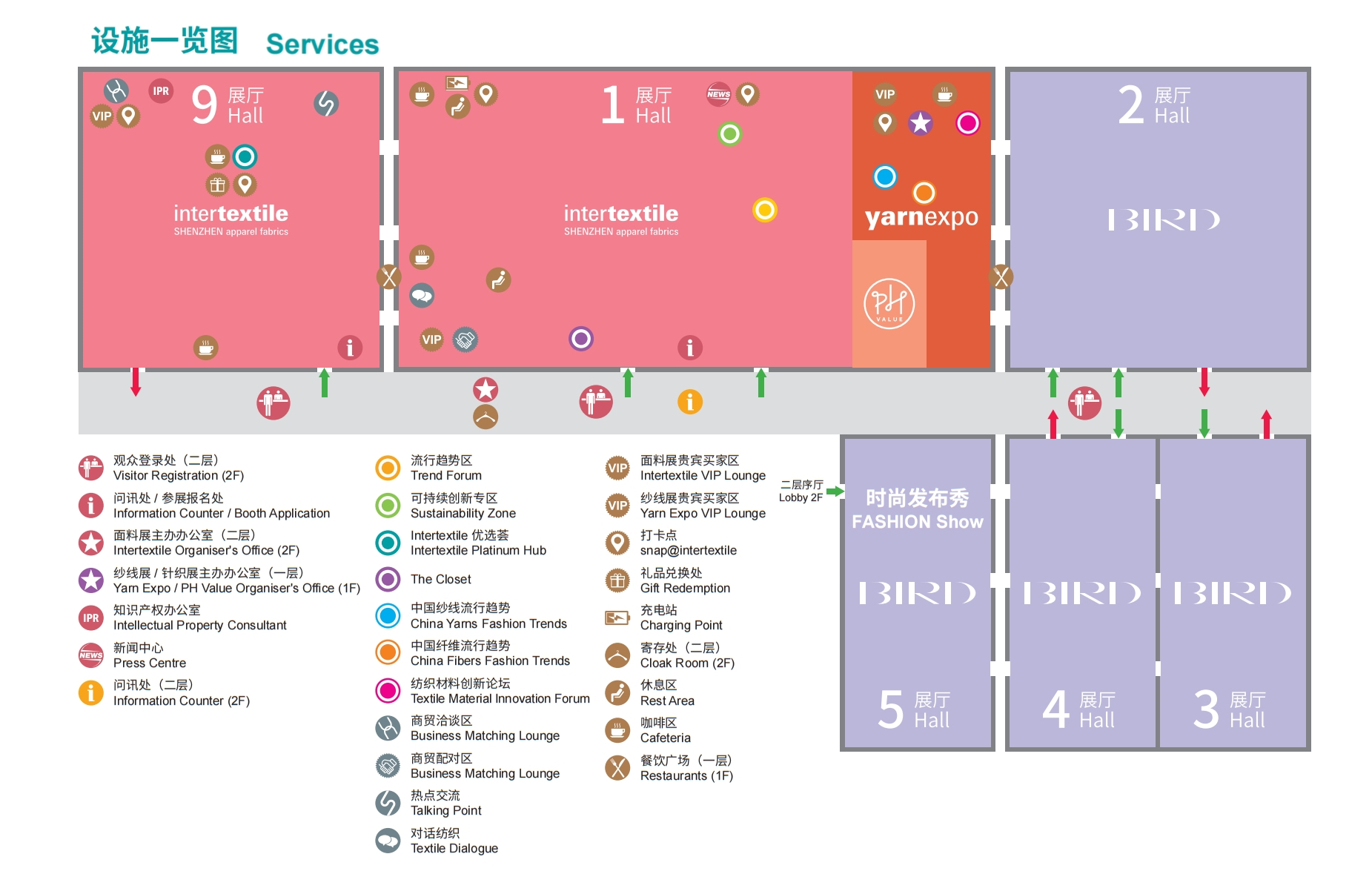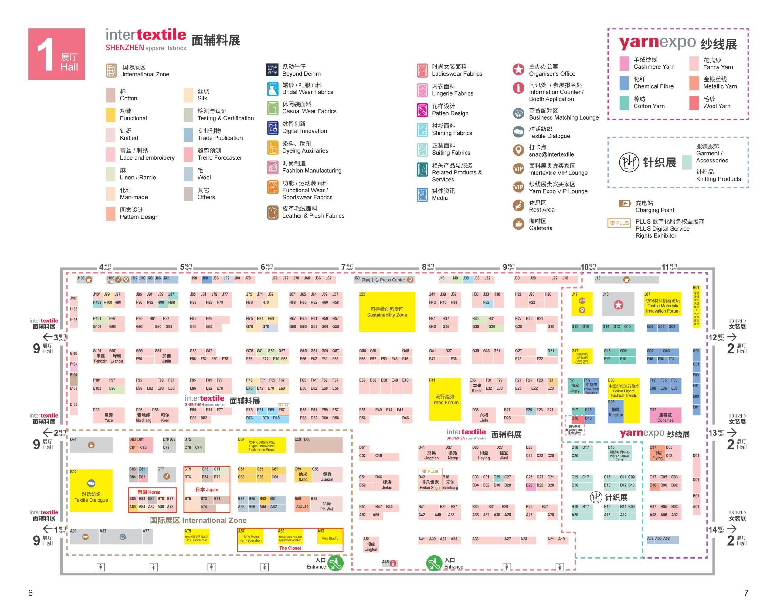 1号展厅(主要):时尚女装面料,国际展区,纱线展,针织展