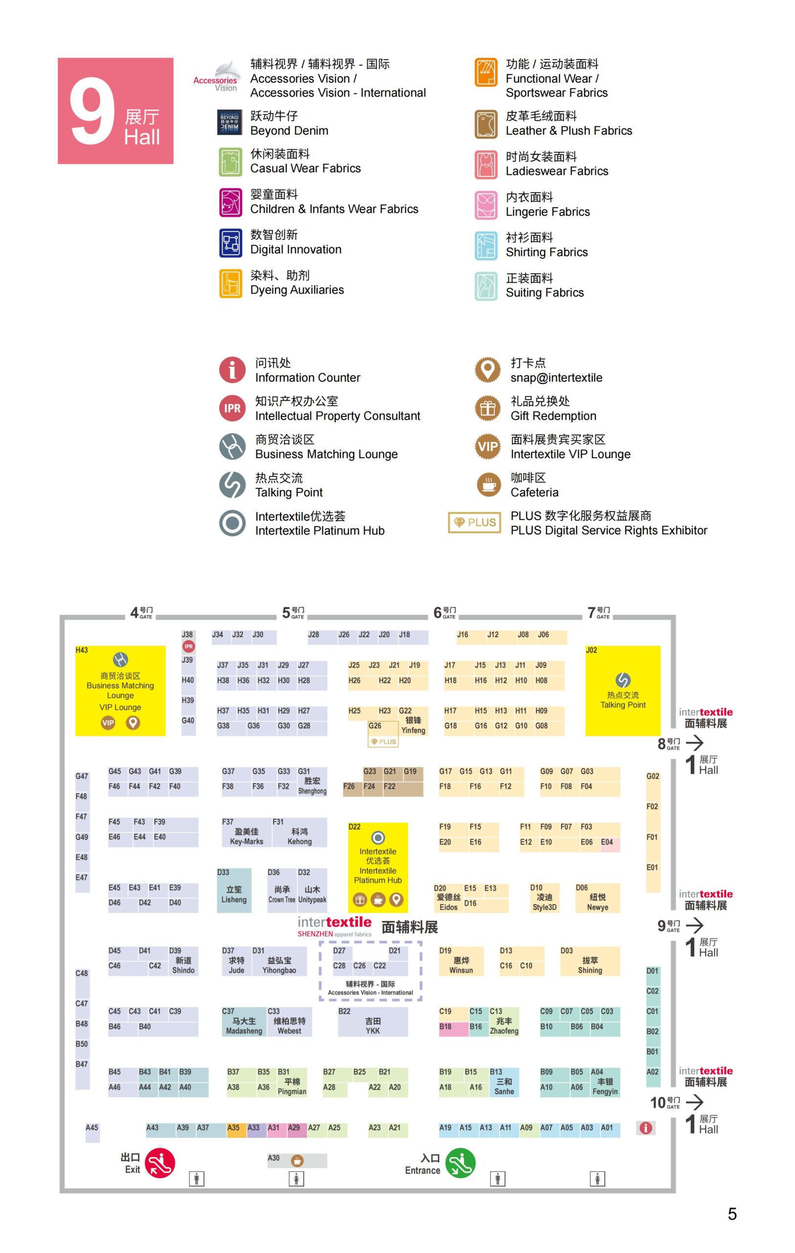 9号展厅(主要):功能运动面料,牛仔面料,休闲装面料,正装面料,内衣婴童面料,衬衫面料,辅料视界